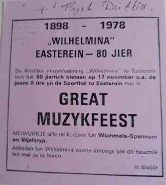 Op 1 oktober 1898 is de Christelijke Muziekvereniging Wilhelmina opgericht. Met het 100 jarig bestaan heeft de vereniging het predicaat Koninklijk gekregen.