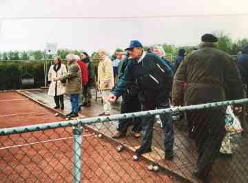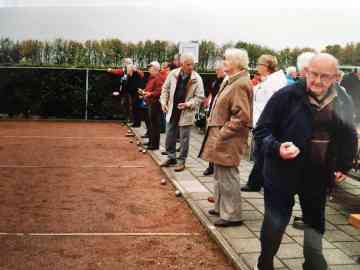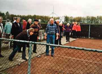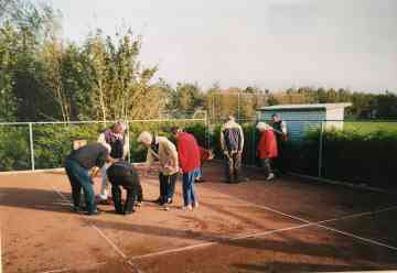 Het onderhoud van de banen wordt uitgevooerd door vrijwilligers van onze club. Onze club telt 64 leden. Uit bovenstaand kunt U opmerken dat het bestuur niet veel tijd en energie in onze vereniging hoeft te steken. In tegenstelling tot de voetbal en kaatsvereningen. Als ik zie hoeveel kaatswedstrijden in het zomerseizoen gehouden worden, en wat voor tijd en energie deze bestuursleden hierin moeten steken, kan ik mij voorstellen dat voor deze functies weinig animo is te vinden bij de leden, dit zelfde geld mijns inziens voor de voetbalclub. Ik denk dat dit een van de redenen kan zijn dat in het verleden is afgeweken van de bepalingen zoals beschreven in de statuten.