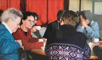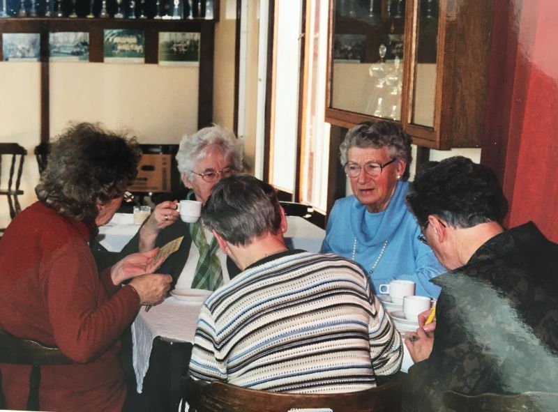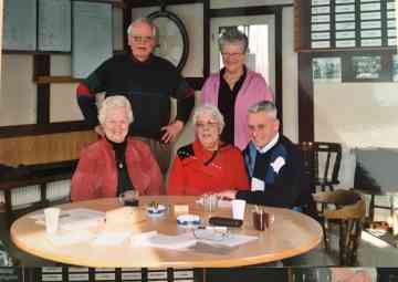 f.l.n.r.: Corrie Bonnema, (staand) Geert Dijkstra, Froukje Osinga, Gryt Rypma,