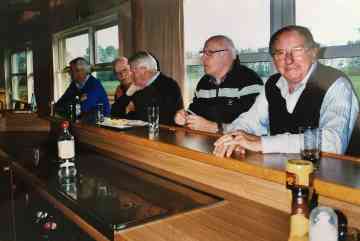 Foar Gerrie de Boer, dêr achter Evert Kingma, rjochts Akke Bijlsma en Chr. Paau