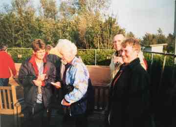 f.l.n.r. Jan Strikwerda, ûnbekind, Uiltje Bouma. Links achter Griet Rypma.