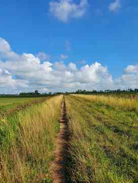 Yn 1995 is yn it ramt fan de ruilferkaverling yn 1995 in skulpepaad oanlein foar kuierders. Ek binne der feeroasters yn oanlein. Der wurdt in soad gebrûk fan makke troch kuierders mei en sûnder hûnen. Dêrom binne de feeroasters oerstallich rekke. Ast it paad rinst kinst genietsje fan it kronkelige paad. De hege lizzing, mei wat foarstellingsfermogen kinst betinke hoe 't eartiids der sompige greiden wiene dy 't sa út en troch ûnder wetter kamen te stean. It paad, rûn en riden mei hynder-en-wein it is iuwen âld. Mei de foto's yn dit finster kinst yn gedachten it paad rinne.