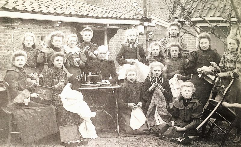 Op it plak dêrt yn 1870 noch fjouwer keamers ûnder ien dak wiene, waard yn opdracht fan ds. J.F. L. Muller ( 1839- 1895) in nij en markant gebou delset mei in wenromte. Dêr waard 'ene Bewaar, naai en breidschool yn ûnderbrocht.