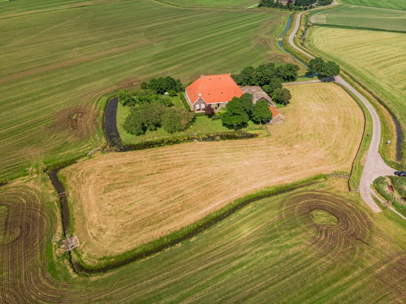 De oude stelpboerderij wordt niet meer bewoond. Van boven is het hele bedrijf go