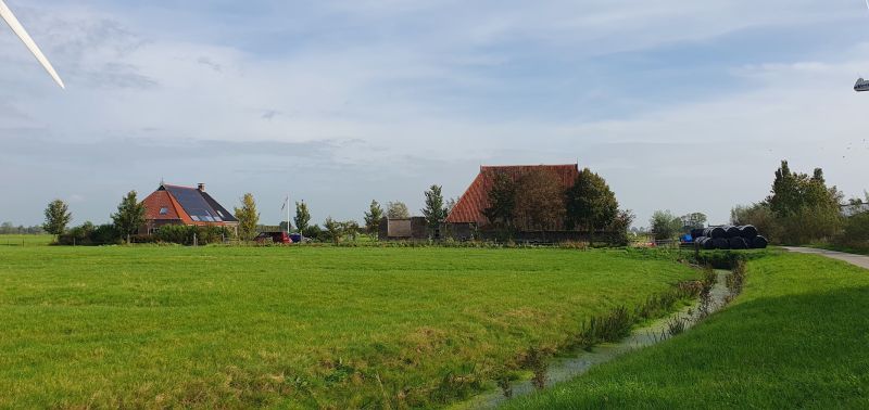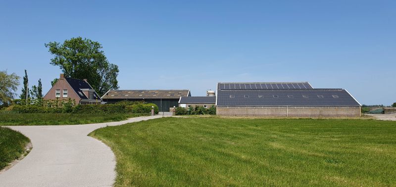 De achterkant van de boerderij met de grote kajuit waar het kuilvoer naar binnen