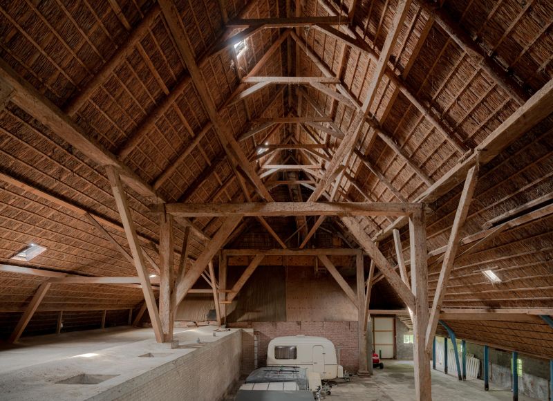 Ter hoogte van de dwarsbinten zit een knik in het dak. Daarmee kon de stalmuur n