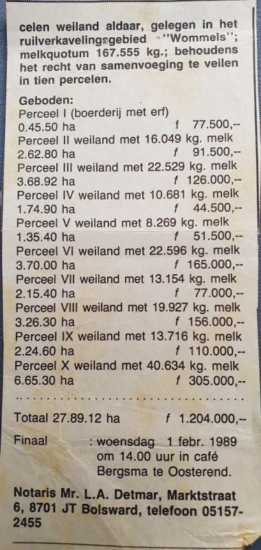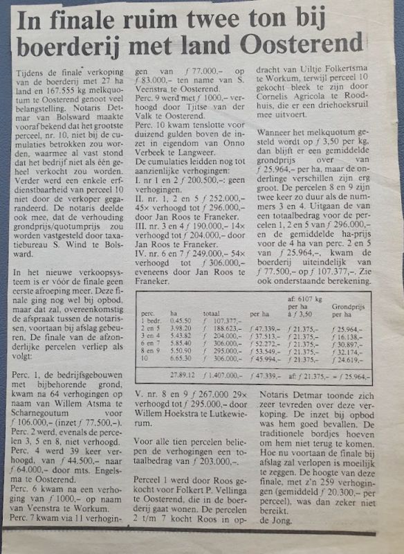Het krantenartikel over de verkoop van het land en de boerderij Meilahuzen 1. D