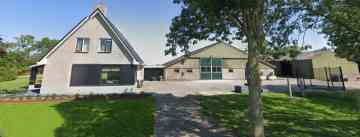 De nieuwe boerderij, de beplanting moet nog groeien.