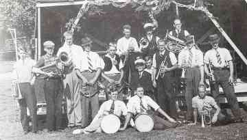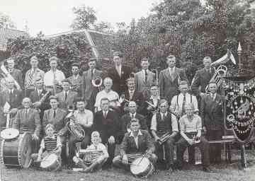 f.l.n.r: Dirigent Marten van der Wal, Hendrik van der Eems, Jan Bruinsma, ?, Men