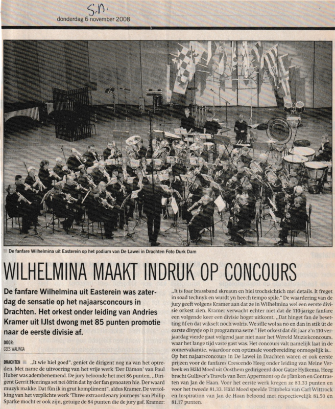 Vanaf het eerste bestaan van de korpsen worden er al concoursen en festivals georganiseerd. In de jaren twintig werden veel muziekconcoursen georganiseerd. Vele korpsen bestonden 25 jaar en dat moest gevierd worden, liefst met een concours. De concoursen hebben altijd een belangrijke plaats in het bestaan van Wilhelmina ingenomen. Tot 1967 vonden de concoursen buiten plaats. Maar de zomer met de toenemende vakanties was geen geschikte concourstijd meer. Vanaf 1968 worden de zomerconcoursen in november in de zaal gehouden.