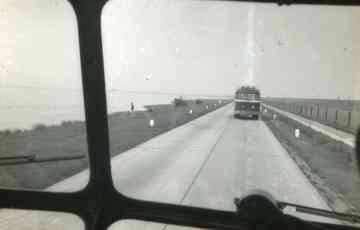 Hjir ride beide bussen efterinoar op de Ofslúttdyk, dy 't doe noch twabaans is,