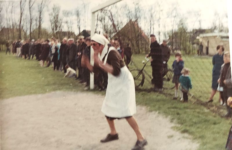 Jelle Bergsma as ferpleechster as keeper yn it doel.