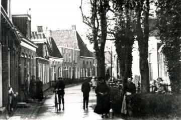 Ansichtkaart, oan de klean te sjen rûn 1900. Wat seach dizze strjitte der sûnd
