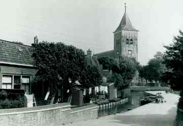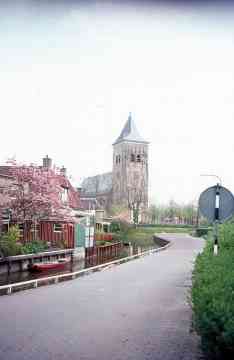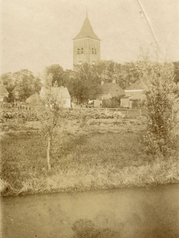 It hôf fan Anne Hingst yn bloei, mei útsjoch op de Grifformearde tsjerke.