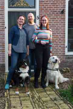 Rene, Corine en Sanne Visser mei de hûnen Marley en Nora.