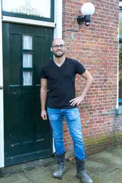 Foar it hûs fan Wander Bruinsma, hy stiet yn de doar. De leane wie noch net bef
