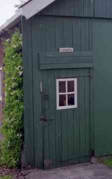 Rjochts foaroan de bûten w.c (it húske) Hielendal achteroan de hokken fan de J