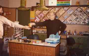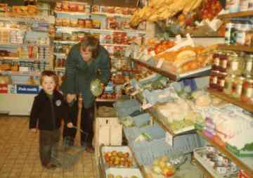 De winkel stie oan de Tsjerkebuorren. Greet Bouma- de Jong en Loke Bouma yn de w