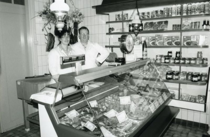 De winkel stie oan de Streek. Op de foto, Jan de Jong en Geeske de Jong- Sijbesm