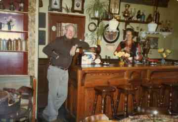 Jelle Bergsma en Alie Bergsma. Yn it âldste kafee fan Fryslân, efter de taap.