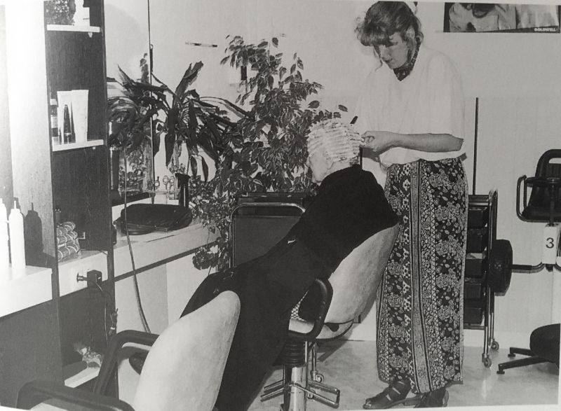 Talitha Jagersma oan it wurk yn har kappersaak op it Skiplein 1, (âlde skoalle)
