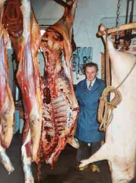Oan de Tsjerkebuorren, Sjoerd Bouma, de slachter, hat de ko en de baarch kreas h