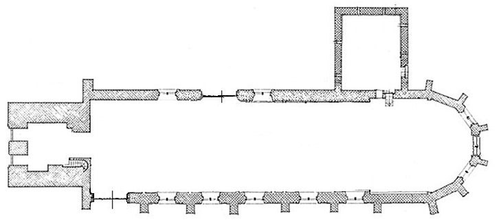 Sjoen de lizzing sil it alderearste bouwurk út foarsoarch oplutsen wêze op in ferheging. By de lettere bou fan de tufstiennen tsjerke is it gebiet fierder ophege troch û.o. it útgraven fan de ferdigeningsgrêft der omhinne. Dy grêft sil sûnder mis tagelyk realisearre wêze mei de bou fan de (ferdigenings)toer, ein 11e iuw.