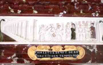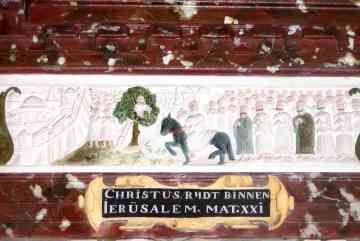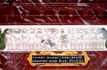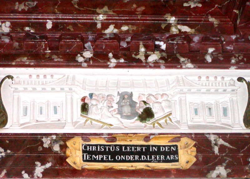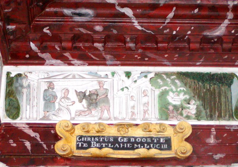 Yn de tsjerke stiet in unyk houten rôtskerm "show" út 1554 yn Renêssânsestyl. De arsjitekt is Cornelis Floris II de Vriendt út Antwerpen en te werkennen oan de fersieringen, allerhanne duvelmaskers en 18 bibelske bylden. Dit roodskerm is fol mei symbolyk en fertelt in eigen ferhaal.