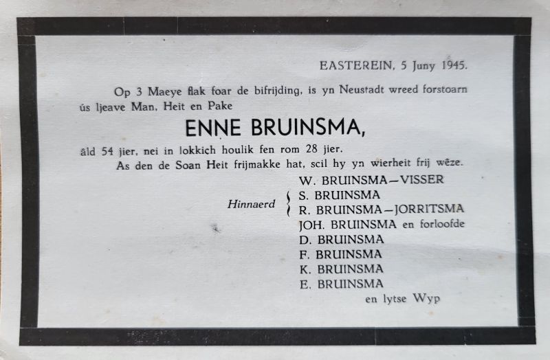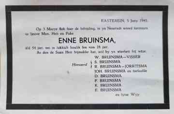 It monumint foar Enne Bruinsma, achter yn de tsjerke, ta neitins oan de fersetsm
