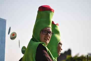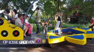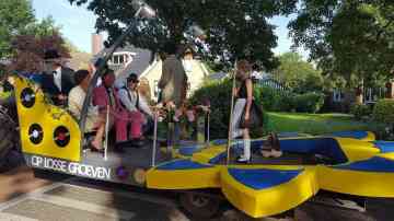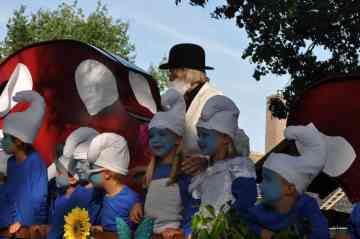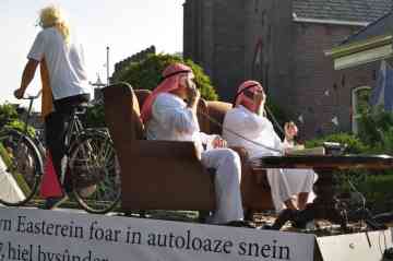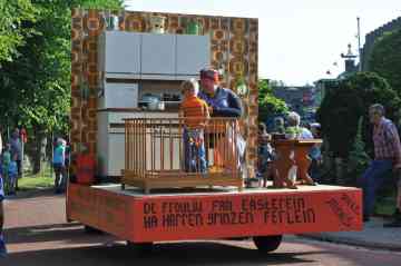 Yn dit finster stean in tal foto's fan de optocht yn 2017.