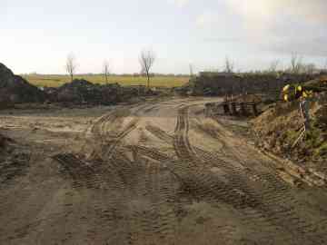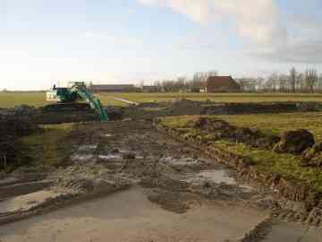 De weg wordt aangelegd naar de Van Eysingaleane. Op de foto is de boerderij van