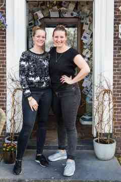 Jelien Pompstra en Kim Mulder, destiids noch de útbater fan kafee Bergsma, mei