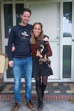 It famke stiet by in hûnekarre. Rjochts, der is belangstelling foar de fotograa