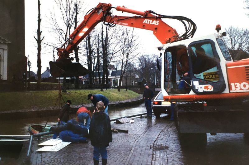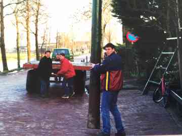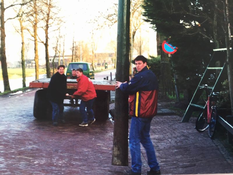 Manmannich oan it wurk! Foar, Hans Zandvliet, achter f.l.n.r. Jaap van der Velde