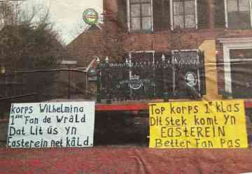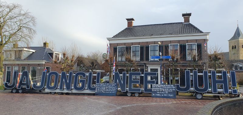 Aldjiersstunt op de drompel fan 2023-2024. De tekst "Ja Jonge Nee Juh"hat inkele