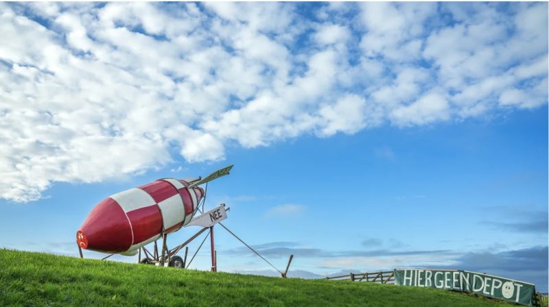 BANTEGA - Op de dijk bij Bantega is een grote bomraket ‘geland’. Een groep a