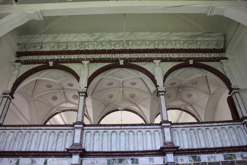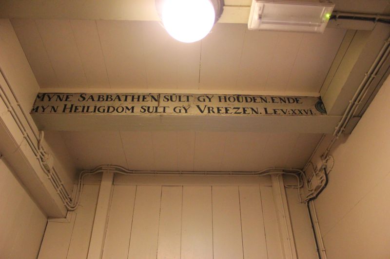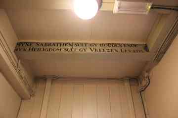 Op de balke stiet yn de 'Statenvertaling' Mijn sabbathen zult gij houden ende Mi