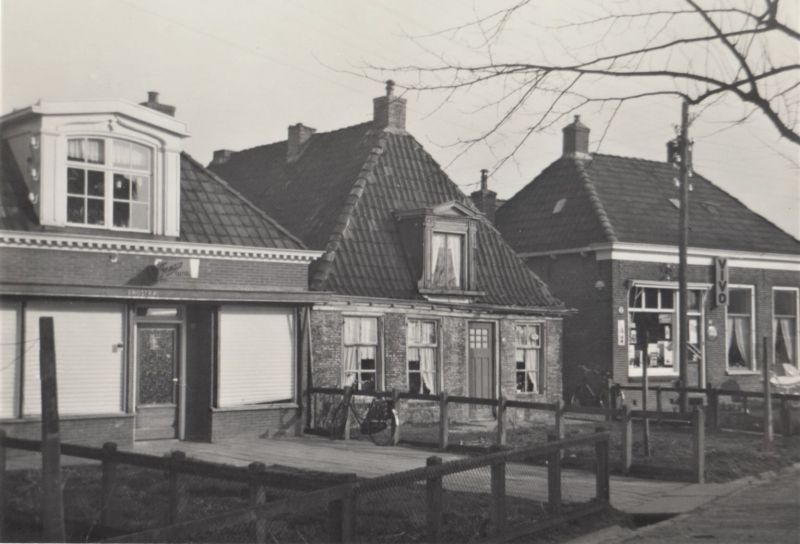 Dit is een foto van voor de oorlog. Op het tweede huis van rechts zitt