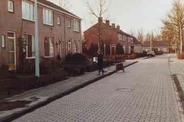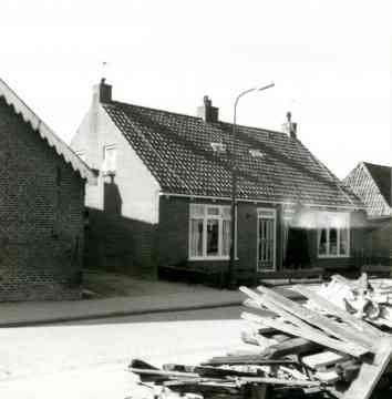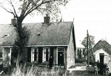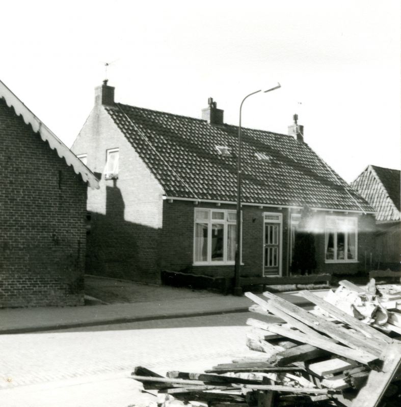 Foto rjochting Wynserdyk. It blok fan trije wenningen is yn 1953 boud.
