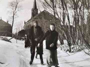 Troch de snie rint in smel paad nei de skoalle ta. Dit paad giet foar it húske
