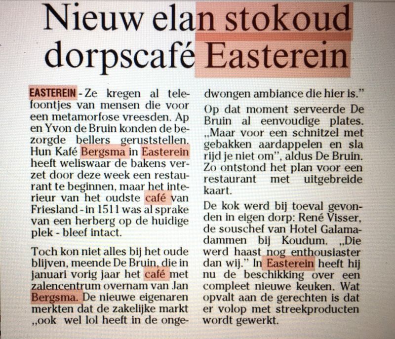 In 2006 namen Ab en Yvonne de Bruin café Bergsma over. Zij wilden het café in