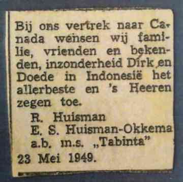 Broer Tjipke Okkema giet yn de foeraazjehannel op de Wynserdyk 10. Letter nimt ek Durk Okkema ôfskied fan it leanwurk. Hy kin boer wurde op Dearsum ûnder Achlum.